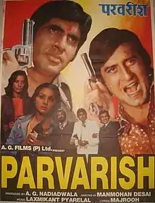 Parvarish (transl.Upbringing) is a 1977 Hindi-language crime drama film directed by Manmohan Desai, starring Shammi Kapoor, with Amitabh Bachchan and Vinod Khanna as two brothers playing oneupmanship, and Neetu Singh and Shabana Azmi as their love interests. The latter four had previously starred, earlier that same year, in Desai's own Amar Akbar Anthony, the highest-grossing film of the year.
