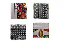 The traditional patacó is a more or less square piece made with a couple of pieces of cardboard usually made from a Spanish playing cards or a box of matches, folded and fitted together the way they can be distinguished between front and back.