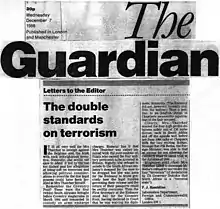 - ↑ Patrick Haseldine (7 December 1988). "The double standards on terrorism". The Guardian. Retrieved 2 April 2009.