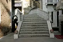 Ponte dei Consorzi, front entry of Palazzo Cappello Trevisan in Venice.
