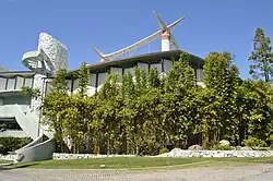 - ↑ Sam Hall Kaplan (September 25, 1988), New Japanese Pavilion Is a Work of Art Itself: It May Look Like a Warrior's Helmet From Wilshire, But How It Works Inside Is What Counts Los Angeles Times.