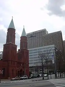 Peachtree Center is a district located in Downtown Atlanta, Georgia. Most of the structures that make up the district were designed by Atlanta architect John C. Portman, Jr. A defining feature of the Peachtree Center is a network of enclosed pedestrian sky bridges suspended above the street-level, which have garnered criticism for discouraging pedestrian street life.[1] The district is served by the Peachtree Center MARTA station, providing access to rapid transit.