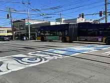In 2017, crosswalks designed by Vietnamese American artist Duy Vo were painted at the intersection of 12th Avenue South and South Jackson Street in the Little Saigon part of the Chinatown–International District.[22][23] Known as the Little Saigon Community Crosswalks, the blue and white crossings depict a swimming turtle and lotus plants. According to the International Examiner: