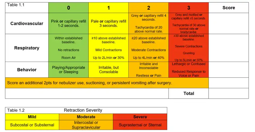 The domains in PEWS represent major body systems that are sensitive to changes in the body and thus create the criteria to be evaluated in a patient to help identify if they are at risk for further deterioration. Parameters on how to measure, such as the importance of including blood pressure, temperature, or nebulizer treatments, change with almost each model.[12] The three domains, cardiovascular, respiratory, and neurological, though are consistently seen throughout each model and have been clinically proven to help identify patients in the emergency department who require admission to the PICU, as well as, assess in advance the need to adapt a care plan to avoid rapid response.[13]