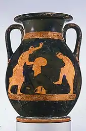 - 1 2 3 4 5 "Two-handled jar (pelike) with actors preparing for a performance". Museum of Fine Arts, Boston. Retrieved 2016-05-01.