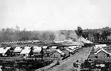 In 1913, the new government-owned State Saw Mills began construction of twin sawmills, No 2 and No 3, at the location then known as Big Brook, to supply half a million railway sleepers for the Trans-Australian Railway. The mill site was in a valley to ensure the mills had a regular supply of water and because it was easier to roll logs down hill to the mills. Big Brook became a thriving private mill town, with a hall, store, staff accommodation, mill workers' cottages, and single men's huts, and two boarding houses.[3] A more distinctive name was soon sought. The name Walcott was suggested but was rejected by the Post Office due to conflict with Port Walcott, also named after Walcott. William Locke Brockman, local farmer and son of early settler Edward Reveley Brockman, suggested Pemberton. The mill town was well established but by 1921 there was community agitation for a government townsite to be declared. Community pressure resulted in lots being surveyed in 1925 and the Pemberton townsite was gazetted in October 1925.[11]