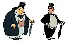 - The Penguin appears in television shows set in the DC Animated Universe (DCAU), voiced by Paul Williams.[8] This version is visually inspired by the Batman Returns version of the character, but was later redesigned to more resemble his comic counterpart.