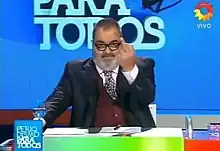![]() This picture shows Jorge Lanata making a one-finger salute in an episode of this program. The logo of the program is at the bottom left corner. | |