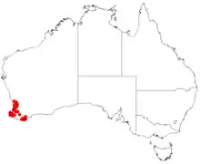 - ↑ Members of the Darling Range Branch, Wildflower Society of Australia (2002). Wildflowers of the West Coat Hills (Revised 2002 ed.). Quality Publishing Australia. p. 25. ISBN 1875737243.