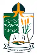 The school crest has many symbolic meanings. The Bishop mitre placed at the top of the crest signifies the connection between the School and the Anglican Church. The left panel of the shield depicts white outlined waves in a green background. The waves represent the location of the school being near the ocean. The green represents one of the school's primary colours and its location in Mindarie. One of the many meanings for Mindarie can be "place of green water".