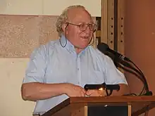 ![]() Serracino Inglott speaking at Researchers' Night 2007, at Saint James Cavalier, Malta | |