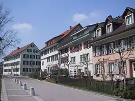 The Ad Fines (a late-Roman fortress), the Breitenloo (a prehistoric lake shore settlement) and the shared or ecumenical (German: Paritätische) church of St. Bartholomäus are listed as Swiss heritage sites of national significance.[20]