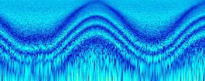 Spectrogram of an 8-stage phaser modulated by a sine LFO applied to white noise.