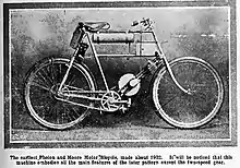 Phelon & Moore was established in 1904, and their motorcycles were branded as P&M. The 1905 P&M featured an inclined single cylinder 4-stroke engine as a stressed member in the frame with 2-speed gear and chain drive to the rear wheel,[6] it being the 'first completely chain driven motor cycle'.[7] P&M motorcycles competed in the first International Six Days Trial (ISDT) in 1913 (now called the International Six Days Enduro).[8] Three P&M motorcycles competed in the 1914 ACU six days trial, all 3.5 hp solo models (of 498cc).[9]