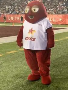 On April 11, 2022, the Stars unveiled their mascot, a monstrous red creature that drew comparisons to other Philadelphia sports mascots Gritty and the Phillie Phanatic.[10][11] The Stars then held a Twitter poll asking fans whether the mascot should be named "Astro", "Cosmo", or "Blob".[12] "Blob" took 65 percent of the vote, and the name was confirmed on April 15.[13] The Stars have offered few details about Blob besides describing him as "out of this world" and noting that he enjoys dancing.[14]