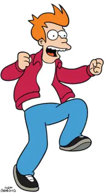 Philip J. Fry, commonly known mononymously by his surname, is a fictional character and the protagonist of the animated series Futurama. He is voiced by Billy West using a version of his own voice as he sounded when he was 25.[1][2] He is a delivery boy from the 20th century who becomes cryogenically frozen and reawakens in the 30th century to become a delivery boy there with an intergalactic delivery company run by his 30th great-grandnephew, Professor Hubert J. Farnsworth. He is the best friend and roommate of Bender and the boyfriend and later fiancé of Turanga Leela.