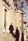 Piana degli Albanesi has been variously called in history.[15] In the licentia populandi granted on January 13, 1487, to the Albanian exiles, Piana degli Albanesi is called Casale Planicili Archiepiscopatus Montisregalis or Piana dell'Arcivescovo,[16][17] but since its construction the town was officially known in Latin Nobilis Planae Albanensium Civitas.[18] This Latin denomination changed into Nobilis Planae Graecorum Albanensium Civitas, with the insertion of Graecorum which indicated the Byzantine Rite practice of the Albanian population (as opposed to the Latin liturgical rites of Latin Christianity). In the centuries, in the cadastral and habitual use of the neighboring Sicilian populations, the Italian name of Piana dei Greci remained from 1810, because the Byzantine Rite Catholics and the ancient Greek language used in the liturgical functions.[19][20][21]