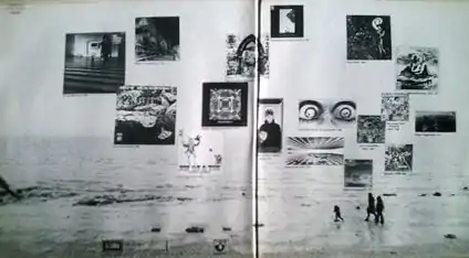 None of the artists who were featured on the album are portrayed on the outer cover. The front and rear of the gatefold show a group of people wearing World War II gas masks sitting in sand dunes with a dead bird on the sand. The interior of the sleeve displays the covers of most of the albums from which the tracks are taken against the background of an incoming sea tide. This background features a family walking across the sands in a washed-out monochrome. The cover design and photographs are credited to Hipgnosis, famous for their progressive rock album cover designs.