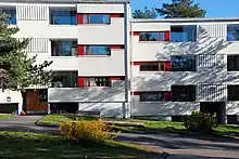 Pihlajamäki is an important site for modern Finnish architecture, and it is the first of Helsinki's suburbs built in the 1960s that was conserved en bloc with a town plan.[1] The architecture of the suburb is unassuming, but there is a distinct polarity in the buildings and surrounding scenery, which creates rich nuances.