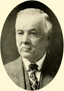 Joseph Buchtel was born in Ohio in November 1830.[17] He came to Portland in 1852 by covered wagon at the age of 23.[6] His first job in Portland was for Leland H. Wakefield daguerreotype studio on Front Street. Eventually, Buchtel took the company over from Wakefield. He was instrumental in the creation of the Pioneer Club.[6] He owned and operated Portland's first photography studio at 5 Morrison Street.[6][18] In 1868, Buchtel was elected the president of the Oregon, Washington and Idaho Territories Association of Base Ball Players.[6] Buchtel was married to Josephine of New York.[19] In 1882, Joseph Buchtel started working for the Multnomah County Sheriff's Office.[20] By 1890, he was working as a real estate agent at Buchtel & Mall Real Estate at 958 12th Avenue.[17][20] He died on August 10, 1916, in Portland.[21] Buchtel also raised the money for a monument at the site of the Champoeg meeting which he helped preserve.
