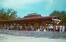 Weiss bought a 19th-century steam locomotive in Pennsylvania and two paddle-wheel boats built in Miami, Florida for the park as well as refurbished antique fire engines and a Wells Fargo stagecoach. Gandy dancers laid almost a half-mile of narrow gauge railroad track for a train to carry visitors around the park. Weiss also dredged a lake and a canal for the paddleboats to ferry visitors from the parking lot into the park. In addition, Weiss surrounded the town at the center of the park with an Indian village, a gold mining area, and a petting zoo with pony rides.[1]