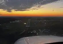 Pittsburgh-Butler Regional Airport, formerly Butler County Airport, opened as the Pittsburgh-Butler Airport[2][3] on September 27 and 28, 1929, with much fanfare and aircraft demonstrations.[3] The airport originally had three turf runways, one of which was later paved, and a turf runway closed. The remaining turf runway ran N/S. The airport was opened by Pennsylvania Aviation Industrial Corp. (PAIC) owned by George Hann, the Mellon interests and some others, who hoped to lure Pittsburgh traffic. During the Great Depression, the airport shut down for some years when there was little business. The two large hangars were used to store corn. In the 1930s, John Graham along with Kenny Sholter helped to clean out the hangars and reopened the airport. It was then renamed the Butler-Graham Airport.[2][4] During its early years, the airport served as an important training area for potential pilots. One notable trainee was Amelia Earhart[3] who received her instrument flight certificate there while practicing for her solo flight over the Atlantic Ocean in 1932.[5] It was also at the airport that Earhart had the long-range fuel tanks installed on her Lockheed Vega.[5] Another notable aviator was C.G. Taylor, who in 1935 moved his Taylorcraft Aircraft company to Butler.[5] His new planes were tested at the airport and his Taylorcraft B model was introduced here.[6] During World War II Graham Aviation trained so many pilots under the Civilian Pilot Training Program that Piper Cubs had to be stored tilted up on their noses to fit them all in the hangars. For many years, Butler-Graham served as an alternate airport for TWA should the weather be down at Allegheny County Airport, which from 1931-1952 was the primary airport of the city of Pittsburgh until Pittsburgh International Airport opened. By the late 1990s, the airport was getting too small to handle the number of aircraft coming in so plans were made to extend the runway by 800 feet (240 m).[5] The extension of the single runway was completed in 2004.
