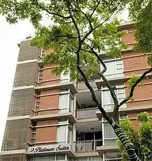 Platinum Suites Bangladesh[1][2][3] is a seven-floor boutique hotel located in Banani, Bangladesh. The first two floors comprise the hotel entrance, lobby and two dining facilities. There are 6 rooms on each floor. The hotel was developed by Sheltech (Pvt) Ltd.,[1] a Bangladeshi real estate developer.[4]