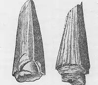 Pliogonodon is an extinct genus of crocodylomorph. The type species, P. priscus, was named by Joseph Leidy in 1856. The holotype, known as USNM 7448, is a worn and broken tooth found from Phoebus Landing on the Cape Fear River in North Carolina.[1] Although the age of the strata in which the tooth was found was not recorded, it is thought to have come from Miocene-age beds.[2] The holotype and another tooth found at the same location are all that is known from the genus. The genus is considered a nomen dubium because of the lack of diagnostic features possessed by the teeth, and has been suggested to be synonymous with the alligatoroid Deinosuchus.[3] Although Carroll (1988) assigned the genus to the basal neosuchian family Goniopholididae,[4] current consensus is that Pligonodon is a Deinosuchus specimen.[5]