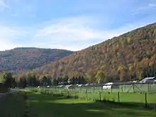 Second growth forests have since covered most of the clear-cut land. The beginnings of today's protected areas were established in the late nineteenth and early twentieth centuries: Pennsylvania's state legislature authorized the acquisition of abandoned clear-cut land in 1897, creating the state forest system.[52] The Game Commission began acquiring property for State Game Lands in 1920,[41] and established the Northcentral State Game Farm on Plunketts Creek in 1945 to raise wild turkey. It was converted to Ringneck pheasant production in 1981, and, as of 2007, it is one of four Pennsylvania state game farms producing about 200,000 pheasants each year for release on land open to public hunting.[53] The Northcentral State Game Farm is in the Plunketts Creek valley just south of Proctor, and a part of it is on the right bank of Loyalsock Creek downstream of the confluence. The Loyalsock State Game Farm is 13 miles (21 km) downstream on Loyalsock Creek, at the village of Loyalsockville. When a May 2007 fire destroyed a brooder house there just days before 18,000 pheasant chicks were due to hatch, the eggs were transferred to the nearby Northcentral State Game Farm without reduction in the production goal.[54]