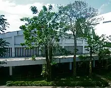 The Main Building (also known as Admin Building) and now named Leopoldo Laurel, Jr. Building is a two-storey building located at the west of the campus. It houses most of the administration offices which are the Student Affairs and Services Section, the Admissions and Registrar's Office, and the Administrative Office. The IT Laboratory, ECE Laboratory, and the Horton Function Room are also located here.