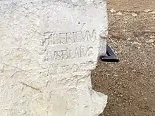 Vardaman "freely" translates it as follows: "Tiberium [?of the Caesareans?] Pontius Pilate, Prefect of Judea [ .. has given?]".[106] The fragmentary nature of the inscription has led to some disagreement about the correct reconstruction, so that "apart from Pilate's name and title the inscription is unclear."[107] Originally, the inscription would have included an abbreviated letter for Pilate's praenomen (e.g., T. for Titus or M. for Marcus).[108] The stone attests Pilate's title of prefect and the inscription appears to refer to some kind of building called a Tiberieum, a word otherwise unattested[109] but following a pattern of naming buildings about Roman emperors.[110] Bond argues that we cannot be sure what kind of building this referred to.[111] G. Alföldy argued that it was some sort of secular building, namely a lighthouse, while Joan Taylor and Jerry Vardaman argue that it was a temple dedicated to Tiberius.[112][113]