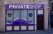 Traditional outlets for the sale of pornography include newsagents' shops and mail order, but another route for is via licensed sex shops. A handful of sex shops were opened by Carl Slack in the London district of Soho in the early 1960s, and by the mid-seventies the number had grown to 59.[57] Some had nominally "secret" backrooms selling hardcore photographs and novels, including Olympia Press editions. Concerns about the visual impact of sex shops on the High Street resulted in the Cinematograph and Indecent Displays Bill in 1973, which failed to become law due to the change of government in 1974. In 1978, David Sullivan opened his chain of Private Shops across Britain.[38] However, the introduction of the Indecent Displays Act 1981 required licensed sex shops to clearly show a warning sign at the entrance to the shop and prevented them from displaying their wares in their shop windows.[4] The Local Government (Miscellaneous Provisions) Act 1982 provided new and tighter licensing controls for sex shops[38] and, along with the purges of the police force that took place during the 1980s, reduced the number of unlicensed premises. The Video Recordings Act 1984 introduced the R18-rated classification for videos that are only available in licensed sex shops. No sex shop customer can be under eighteen years old. The Indecent Displays Act is still in force, and as a result the fronts of sex shops are often boarded up or covered in posters, though in some cases lingerie, non-offensive covers of adult material, etc. may be shown in the shop windows depending on the licence conditions of the local authority. Section 3 of the Obscene Publications Act allows the police to seize obscene material under warrant and take it to the nearest magistrate to be destroyed. This is preferred to a trial by police and defendants alike, and seizures are seldom contested.[4]