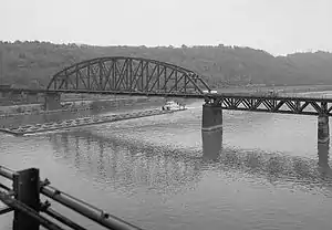 The PPR Port Perry Bridge is a truss bridge that carries the Port Perry Branch of the Norfolk Southern Railway across the Monongahela River between the Pennsylvania towns of North Versailles Township, and Duquesne. The bridge was built to serve the Pennsylvania Railroad, to provide better access to industrial sites, and to help through trains bypass downtown Pittsburgh. Today, the bridge and corresponding route serve a similar purpose and are used to allow high-level loads, especially double-stacked container cars, to avoid the narrower routes through Pittsburgh.