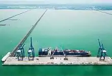 Port of Kuala Tanjung is a sea port at Batubara Regency, North Sumatra, Indonesia. Once fully functional the port can accommodate 60 million TEUs (twenty-foot equivalent units) per year as the biggest port in West Indonesia, bigger than Port of Tanjung Priok in Jakarta.[1] The first phase of development of Kuala Tanjung Multipurpose Terminal was inaugurated in 2018. The first ship to dock at the port was the cruise ship SuperStar Libra on 5 April 2018 from Port Klang, Malaysia.[2][3] The port made its debut in the global container market, with its first shipment on 28 March, 2020.[4]