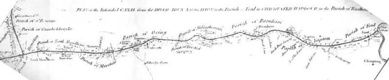 The Chichester ship (or Barge) canal ran from the sea lock at Birdham to the junction of the Portsmouth and Arundel Canal at Hunston and then North to a basin in the south of the city of Chichester.[4]