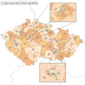 2 - central Bohemia (272 01 Kladno, 280 01 Kolín). Numbers 200 00 - 249 99 are reserved for internal needs of the postal system itself and are not assigned to any region. The Prague central distribution post office uses 225 00.