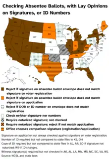 - ↑ "Verification of Absentee Ballots". www.ncsl.org. Retrieved July 2, 2020.