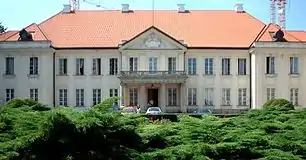 The original building that stood where the palace now stands was burned down by Swedish and Brandenburgian forces during the Swedish Deluge in the 1650s.[1] The new one was commissioned by Ernest Denhoff and construction started in 1693 under the architect Giovanni Pioli. From 1731 it belonged to August Aleksander Czartoryski.