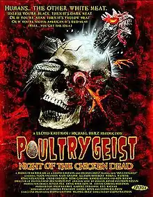 Poultrygeist: Night of the Chicken Dead is a 2006 black comedy musical horror film directed by Lloyd Kaufman and co-directed by Gabriel Friedman from a screenplay by Friedman and Daniel Bova. The film centers around the takeover of a New Jersey fried chicken fast food restaurant by possessed zombie chickens after it is built on top of a sacred Native American burial ground. The film was distributed and released on December 29, 2006, and in 2008 on DVD by Troma Entertainment.[3]