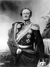 In 1827, Johann von Brese, then working in the War Ministry's engineering section, was instructed to prepare a detailed plan. The result, dated 23 March 1828, included the large fort on Winiary Hill, fortifications on the cathedral island (Ostrów Tumski) and the right bank, and the core defensive line surrounding the left-bank city. The plan was approved by General Gustav von Rauch (chief inspector of forts), and then presented by General Karl von Hake to King Frederick William III, who approved it in principle, asking Rauch to make some improvements.[4] These were agreed on 18 June 1828 by a committee of officers headed by Rauch, and then supplemented by Rauch himself (it was due to Rauch that Grolman's proposed additional line in front of the main defences was excluded from the plans). The king gave his final approval on 14 August 1828, ordering Hake to begin construction with the Winiary fort and the weirs on the Warta and on the Wierzbak (Wierzbach) stream.[4]