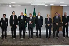 The presidency of Michel Temer began on May 12, 2016, when the vice-president of the Republic, Michel Temer, temporarily assumed the position of president of the Brazilian Republic, after the temporary removal of President Dilma Rousseff, as a result of the acceptance of the impeachment process by the Federal Senate.[1][2] Once the process was concluded, on August 31 of the same year, Temer took over the position permanently, which he held until January 1, 2019, when the administration of Bolsonaro began.[3]