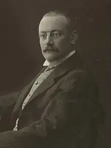 In 1897 Eduard entered the Austrian administrative service, which he served in the state of Salzburg and also as district captain of Mariánské Lázně.[3] In addition, he worked in the Austrian Ministry of the Interior. There we plans for him to be appointed mayor of Salzburg in 1913, but this did not see through. In the wake of the beginning of World War I he was appointed to manage the war relief office, where is commitment to humanitarian issues led him to being appointed to the Ministry of Social Welfare in 1918.[4] He held contact with Leopold Freiherr von Imhof which led to him being appointed Governor of Liechtenstein in 1914. On 26 May 1918, he left the civil service and became president of the General Pension Fund for Employees and board member of the Allgemeine Bodencreditanstalt until the end of 1918.[2]