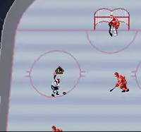 An energy system was made specifically for the Super NES version.[6] The idea of the energy system was to be able to wear down the opponent's players in order to make the goalie too exhausted to block the player's shots.[6] Turning the fatigue mode off in the options screen is akin to accessing God mode in most first-person shooters; it made games impossible to score in.[6] The AI-controlled players love to scramble inwards for the puck, making passing an awkward affair for both teams.[6] Every time a physical altercation is done on the ice, the players get even more exhausted - punishing the player for roughing above and beyond the penalty box.[6]