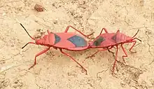 Probergrothius sanguinolens is a species of bug found in India. They feed on a range of seeds and are particularly common on the seeds of Sterculia and other Malvaceae. They also feed on freshly dead animal matter with early instar nymphs preferring animal matter to seeds.[2]