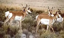 Three subspecies are considered endangered in all (A. a. sonoriensis, A. a. peninsularis), or part of their ranges (A. a. mexicana). The Sonoran pronghorn has an estimated population of fewer than 300 in the United States and 200–500 in Mexico, while there are approximately 200 Peninsula pronghorn in Baja California.[1] Populations of the Sonoran pronghorn in Arizona and Mexico are protected under the Endangered Species Act (since 1967), and a recovery plan for this subspecies has been prepared by U.S. Fish and Wildlife Service.[1] Mexican animals are listed on CITES Appendix I. Pronghorns have game-animal status in all of the western states of the United States, and permits are required to trap or hunt pronghorns.[1]