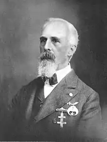 Politically, Parker was a member of the Democratic party.[3] He was elected to represent Maricopa county during the 19th Arizona Territorial Legislature.[1] During the session, he was an advocate of the bill funding construction of a capitol building.[7] He won a second term during the election of 1900.[5] The 1901 session of the legislature was the first to utilize the new capital building and Parker was selected to be Speaker of the House for the session.[7] During the terms of Governors Franklin and McCord, Parker served as an aide-de-camp at the rank of lieutenant colonel. He was also a member of the Democratic territorial central committee.[6] Socially, Parker was a 32° Mason as well as a member of the Knights Templar and Nobles of the Mystic Shrine.[2] Other memberships included the Grand Army of the Republic, Sons of the American Revolution, and the Arizona Society of Civil Engineers.[7]