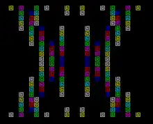 Minter had been considering "dynamic interactive pattern generators" but hadn't coded any previously. An idea for an algorithm came to him, in which patterns would be seeded along a path, which would then expand and change shape and colour over time. He coded it in 6502 assembler language, fitting into about 1 kilobyte.[1] Running the code for the first time had a profound effect on Minter: "It just felt wonderfully new, and somehow primal... it was like the patterns and mandalas that have fascinated humans for millennia, but come to life, under your control..."[1]