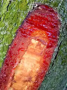 | Wound showing "dragon's blood" sap | |
