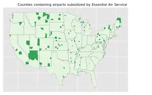 The Essential Air Service (EAS) is a U.S. government public service obligation style program enacted to guarantee that small communities in the United States, which, prior to deregulation, were served by certificated airlines, maintained commercial service. Its aim is to maintain a minimal level of scheduled air service to these communities that otherwise would not be profitable. This came in response to the Airline Deregulation Act, passed in 1978, which gave U.S. airlines almost total freedom to determine which markets to serve domestically and what fares to charge for that service.[3] The program is codified at 49 U.S.C. §§ 41731–41748.
