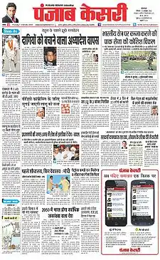 Punjab Kesari is a Hindi-language newspaper published from many centres in Punjab, Haryana, Rajasthan, Himachal Pradesh and Delhi in India. It is owned by the Punjab Kesari group (The Hindsamachar Ltd.). It is one of the four newspapers started by the group; the other three are Hind Samachar in Urdu, Jagbani in Punjabi languages and Navodaya Times in Hindi languages from Delhi NCR.